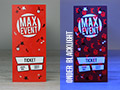 Met security print brengen we een bijna onzichtbare extra bedrukking aan op de tickets. Die extra bedrukking gaat rood oplichten als je het ticket onder blacklight controleert. Mocht iemand de tickets proberen te kopiëren, dan wordt die onzichtbare inkt niet mee gekopieerd en zal de kopie niet voorbij een controle geraken. Je activeert de optie bij tickets aan de linkerkant in het menu.