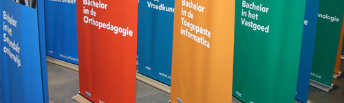 Met banners kan je op een visuele en overzichtelijke manier informatie verschaffen aan toekomstige studenten. Onze roll-up banners zijn hiervoor uitermate geschikt want ze zijn in 1-2-3 opgesteld. Hogeschool Odisee behoort al tot 1 van onze tevreden klanten voor onze roll-up banners.