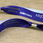 Ken je die kleerhangers in kledingwinkels met plastic maataanduiders? Niet meteen elegant in een mooie boetiek. Maxevent to the rescue. Laat stoffen polsbandjes weven of drukken met je logo, naam en de kledingmaten. Maak er lusjes van en hang ze rond de kleerhanger. Veel beter!