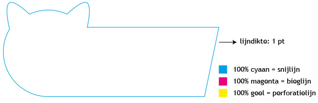 Naast de lijndikte is ook de kleur van de lijn belangrijk. Je kan 3 verschillende kleuren opgeven zodat we onmiddellijk weten wat de bedoeling is. Voor ons voorbeeld hebben we enkel een snijvorm nodig, ik moet dus enkel de kleur 100% cyaan gebruiken (C100 M0 Y0 K0).