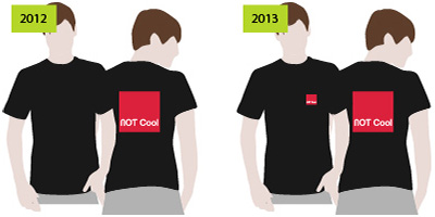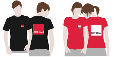 In dit voorbeeld is het ontwerp op de rode t-shirts een andere vorm dan bij de zwarte t-shirts. Dit is niet te realiseren met een eenvoudige kleurwissel, dit is een nieuwe type van bedrukking voor de rode t-shirts.