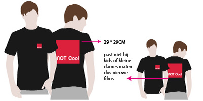 We willen het logo op de rug zo groot mogelijk laten drukken, maar we hebben naast de volwassen maten ook kindermaten van t-shirts nodig. We begrijpen dat de bedrukking op die kleinere maten minder groot kan, maar willen toch graag het maximum formaat gedrukt op de verschillende maten(groepen). Het logo vooraan, op de linkerborst, mag geven groot blijven zowel op de heren t-shirts als op de kids t-shirts