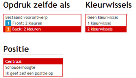 In dit geval moeten er vooraan dus 2 bedrukkingen toegekend worden. Zowel als verwijzen naar een bedrukking vooraan, omdat het beoogde resultaat niet kan gehaald worden met slechts 1 drukgang.